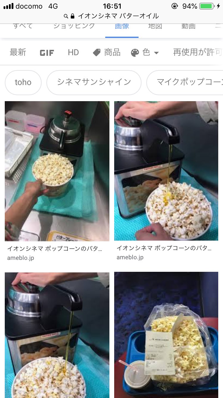 ・ポップコーン単品 塩ポップコーン sサイズ:価格3円 約242カロリー 塩ポップコーン mサイズ:価格370円 約468カロリー 塩ポップコ l イオンシネマのバターオイルをかけたポップコーンが好きです。 なのにコロナで今はやっていません。 とても悲しいです。 バターオイルを自分で作ろうかなって思ってググってもあまり出てきません。。 どなたかかけるバターオイルの作り方を知りませんか? しかし、しばらくするとヴァージン・シネマは東宝に買収され、 名前もtohoシネマズと変わり、サービスもマイナーチェンジしてしまいました。 実際これといってサービスに大きな変化はなかったのですが、 ポップコーンの溶かしバターだけは別でした。 なんと、セルフで掛け放題ではな